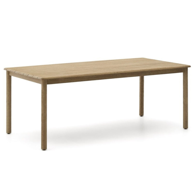 Enhance your outdoor dining space with our 'Elias' dining table, crafted from solid acacia timber, renowned for its durability and elegance. This sustainably harvested hardwood brings natural warmth and distinctive charm to any décor. Finished with a refined brushed texture, it promises long-lasting beauty, creating the perfect setting for unforgettable meals and social moments.
