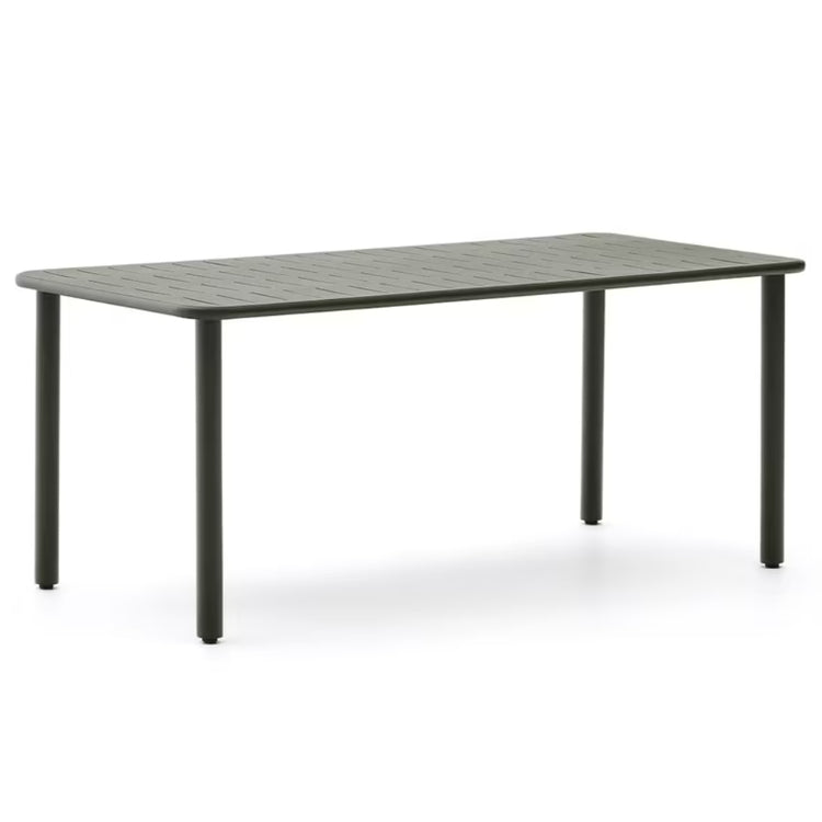 Elevate your outdoor dining space with our stylish 'Dion' dining table, crafted from tough galvanised steel that resists rust and corrosion. Its rounded edges and gentle grooves add a refined touch. This adaptable table easily matches various dining chairs from our collection, making it a perfect fit for a wide range of home aesthetics.