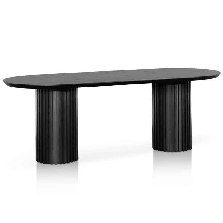 Transform your dining area with our stunning 'Boone' dining table. Expertly crafted and beautifully designed, this table features a mesmerising fluted pedestal base and elegant tapered tabletop edge. The grain of the timber veneer adds a touch of sophistication and is perfect for pairing with various interior styles.